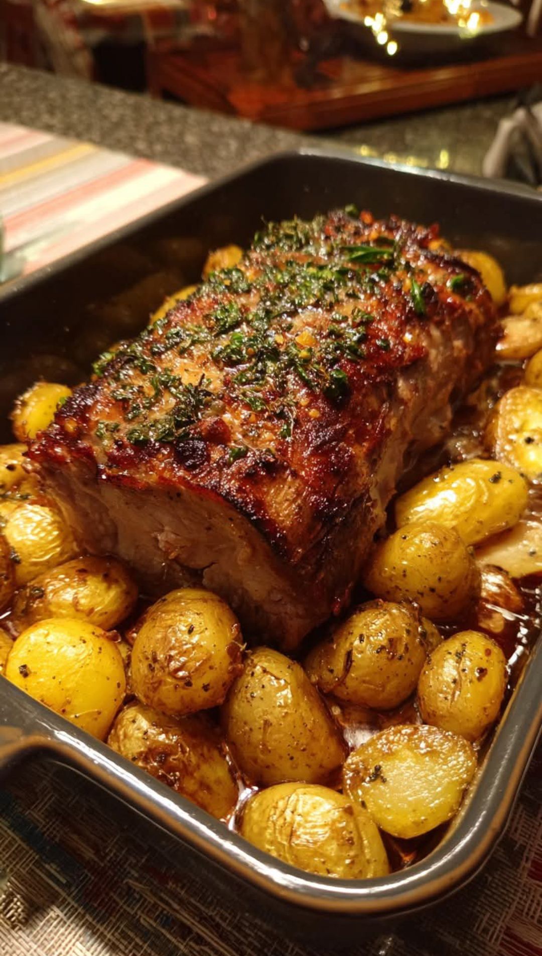 Roasted Pork Loin with Garlic Potatoes – A Hearty, Flavorful Meal