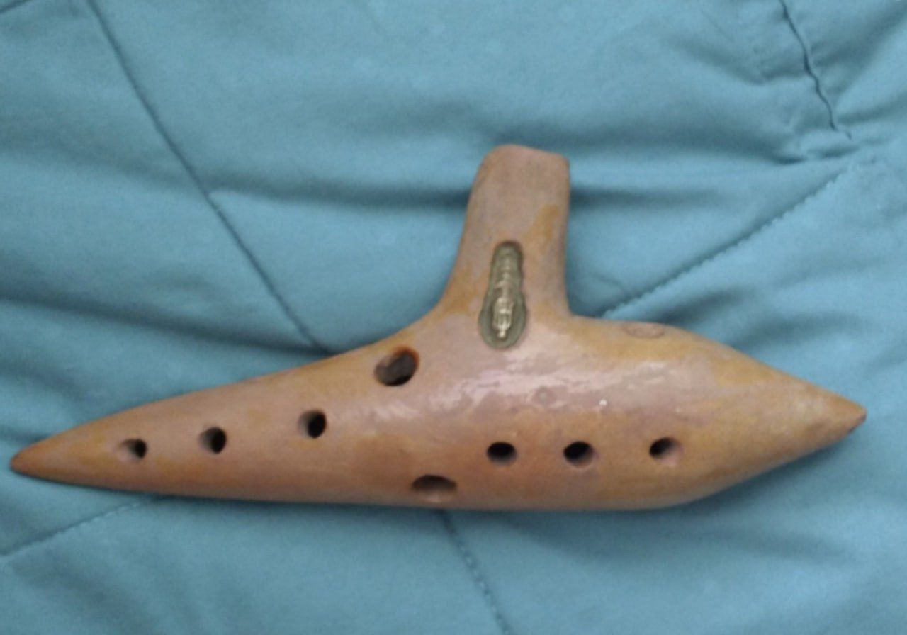 A strange, submarine-shaped ceramic object—somewhere between a whistle and a potato. I picked it up, flipped it over, and there it was: