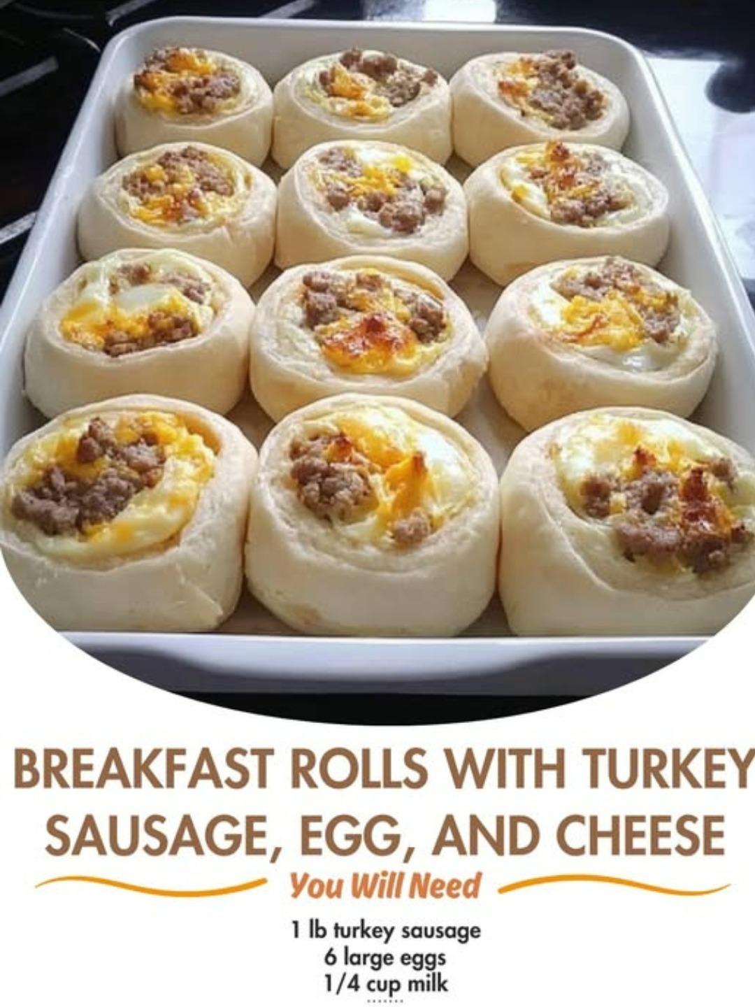 A wholesome, portable breakfast that combines savory turkey sausage, fluffy eggs, and melty cheese wrapped in golden, flaky rolls. Perfect for busy mornings or a leisurely brunch!”