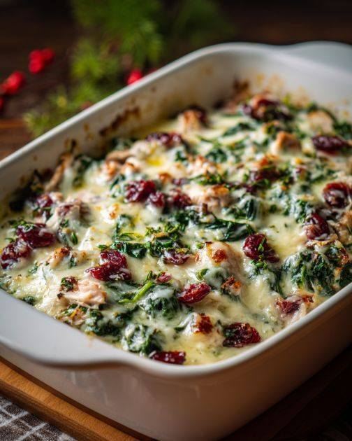 A holiday favorite, simplified. This cozy casserole brings together leftover turkey, tart cranberry sauce, fresh spinach, and melty cheese for a dish that feels festive without any fuss. It’s the perfect way to turn Thanksgiving remains into a comforting, easy meal.