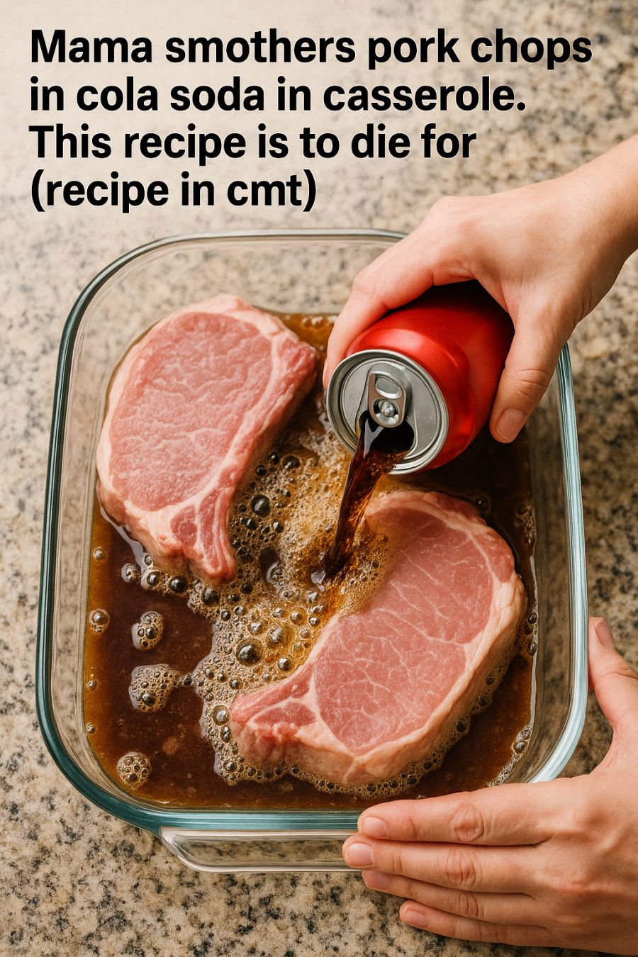 Some recipes don’t just feed you—they hug you from the inside. They remind you of Sunday dinners, kitchens filled with steam and laughter, and the unmistakable sound of a casserole dish sliding into the oven. Mama’s pork chops smothered in cola soda is one of those recipes. It sounds unusual at first, maybe even a little shocking, but one bite is all it takes to understand why this dish has been passed down, whispered about, and guarded like a family secret.