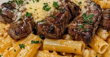 Garlic Butter Steak with Creamy Parmesan Rigatoni